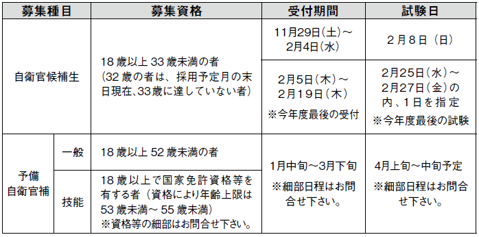 自衛官候補生、予備自衛官補の募集についてお知らせします。