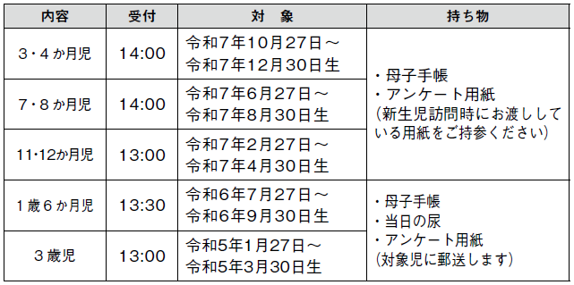 ■乳幼児・1歳6か月児・3歳児健診のお知らせ