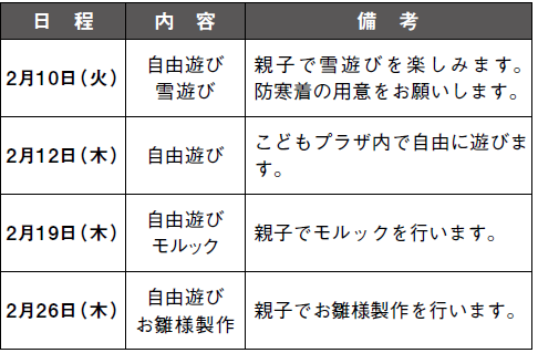 ◇赤ちゃん広場の対象家庭の方もわんぱく広場に記載している2月19日(木)「モルック」に参加できます。