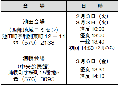 ・「一般」または「初回」を受講される方は、池田会場等で受講してください。