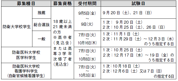 ◇防衛大学校学生、防衛医科大学校医学科学生、防衛医科大学校看護学科学生(自衛官候補看護学生)についてお知らせします。