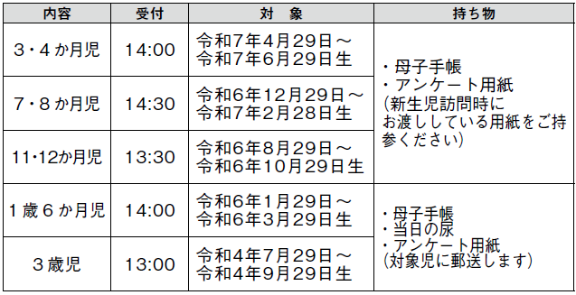 備考:母子手帳を持参してください。