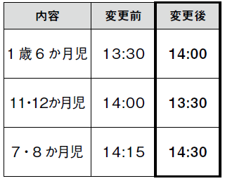 広報8月号に掲載しました乳幼児・1歳6か月児・3歳児健診の受付時間が一部変更になりました。