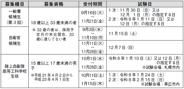 申込み・問合せ:自衛隊帯広募集案内所