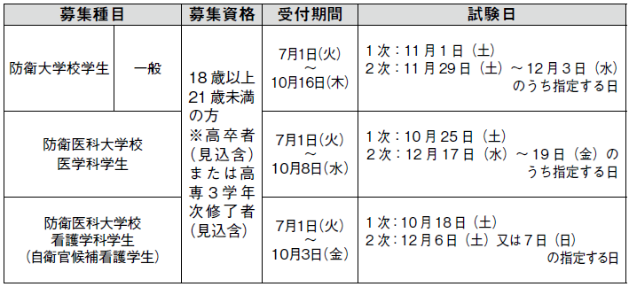 ▽防衛大学校学生、防衛医科大学校医学科学生、防衛医科大学校看護学科学生(自衛官候補看護学生)についてお知らせします。