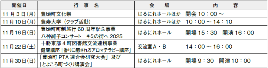 ・月例行事予定の詳細は、総合体育館1階ロビーに掲示していますので、詳細についてはお問合せください。