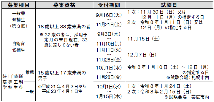申込み・問合せ:自衛隊帯広募集案内所