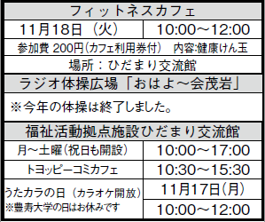 くらし 11月のつ・ど・いの場 28/39 前の記事 次の記事 発行日 : 2025年11月01日 自治体名 : 北海道豊頃町 広報紙名 : 広報とよころ 2025年11月号 ※各サロン公共ポイント対象です。 問合せ:社会福祉協議会 【電話】574-3143 Tweet シェアする 役場だよりー募集ー 役場だよりー催し物ー