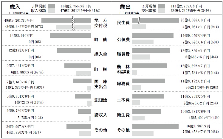 くらし まちの台所 令和7年度予算執行状況 3/30 前の記事 次の記事 発行日 : 2025年12月12日 自治体名 : 北海道足寄町 広報紙名 : 広報あしょろ 令和7年12月号 令和7年4月から令和7年9月までの収入・支出状況です ■一般会計 一般会計 支出済額 38億4,249万5千円 ■特別会計 ■企業会計 Tweet シェアする まちの台所 令和6年度決算状況(2) 世界に羽ばたけ!足高生―足寄高校生海外研修派遣事業―