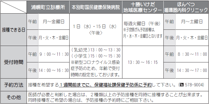 ※子宮頸がんにつきましては、ほんべつ循環器内科での接種は実施しておりません。