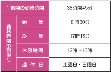 ※認定こども園、老人ホーム、診療所など本庁以外の勤務場所では、勤務形態が一部異なります。