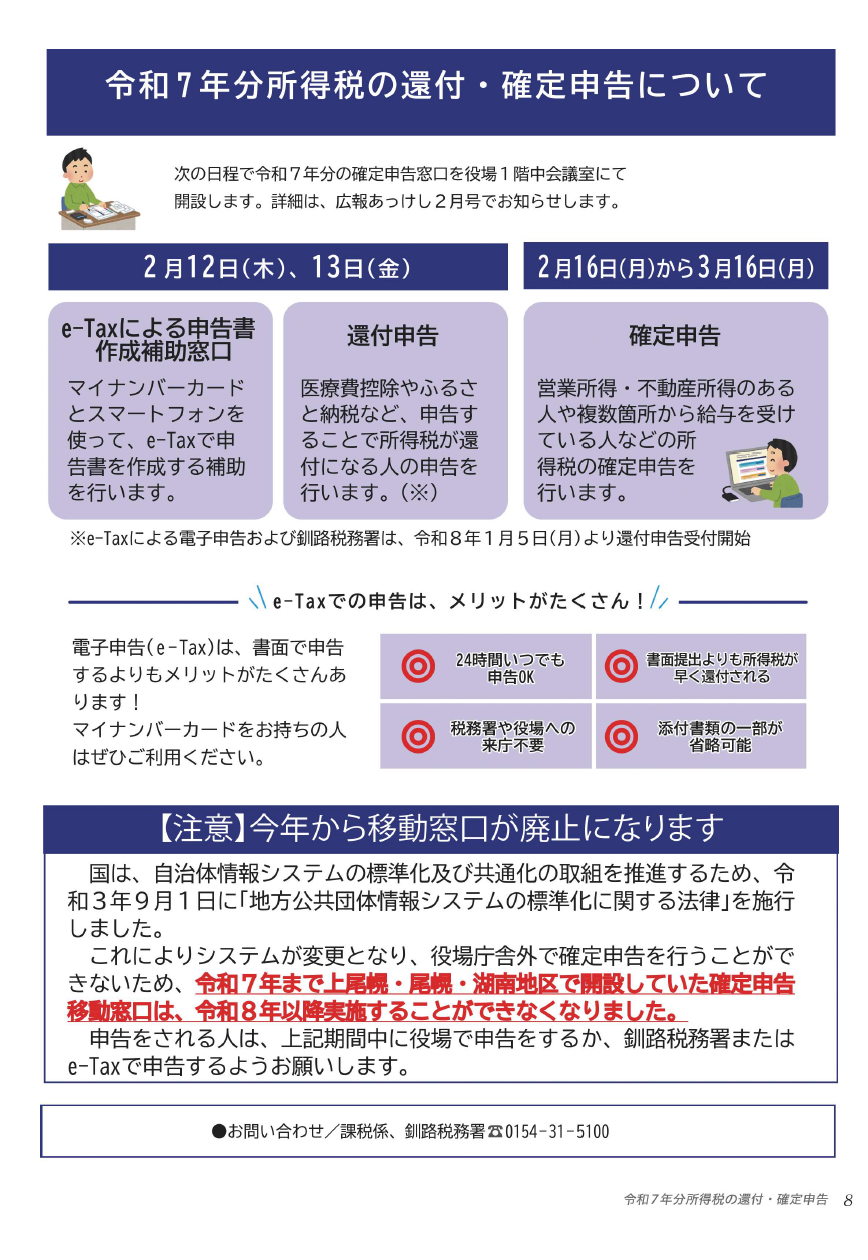 くらし 広報あっけし 令和8年1月号 P.8 6/18 前の記事 次の記事 発行日 : 2026年01月01日 自治体名 : 北海道厚岸町 広報紙名 : 広報あっけし 令和8年1月号 Tweet シェアする 広報あっけし 令和8年1月号 P.7 広報あっけし 令和8年1月号 P.9