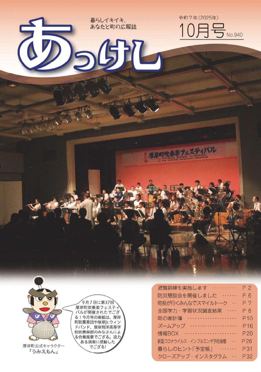 その他 広報あっけし 令和7年10月号 表紙 1/26 次の記事 発行日 : 2025年10月01日 自治体名 : 北海道厚岸町 広報紙名 : 広報あっけし 令和7年10月号 Tweet シェアする 広報あっけし 令和7年10月号 P.2-3