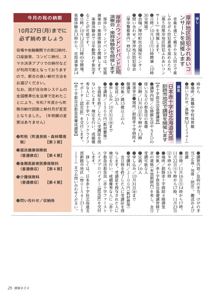 その他 広報あっけし 令和7年10月号 P.25 20/26 前の記事 次の記事 発行日 : 2025年10月01日 自治体名 : 北海道厚岸町 広報紙名 : 広報あっけし 令和7年10月号 Tweet シェアする 広報あっけし 令和7年10月号 P.24 広報あっけし 令和7年10月号 P.26-27