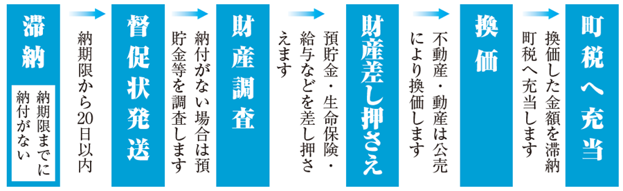 町は、町民の皆さまが納入しやすい環境づくりに取り組んでまいりますので、未納のある方は、早期に納入いただきますようお願いいたします。
