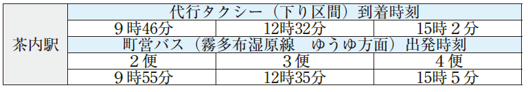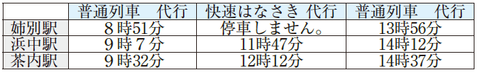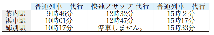 ◇代行バス及び代行タクシーの運行時刻(町内各駅のみ掲載)