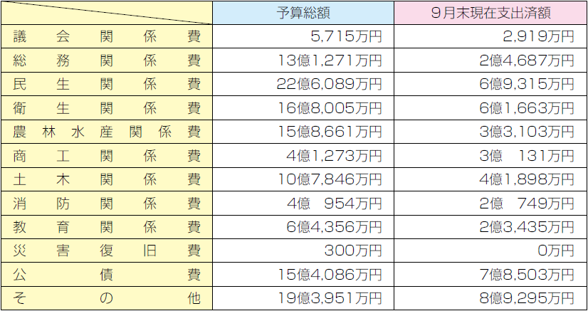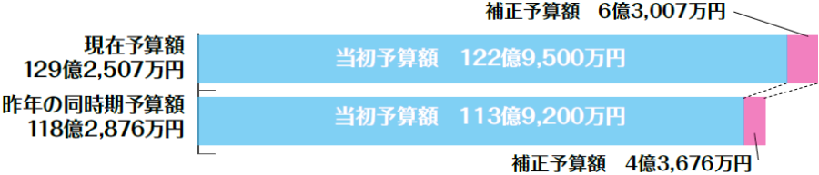 令和7年度の一般会計および特別会計(公営企業会計を含む)を合わせた当初予算額は177億5,968万円で、補正予算により7億1,204万円を追加し、9月末日現在における予算総額は、184億7,172万円となっています。