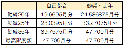 ◇退職手当の支給率(国と同じ)(令和7年4月1日現在)