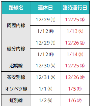 祝日により、お昼の便を運行できない場合、下記のとおり臨時運行します。