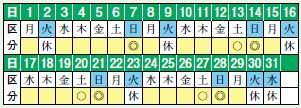 ◎…全面 〇…半面 休…休館日