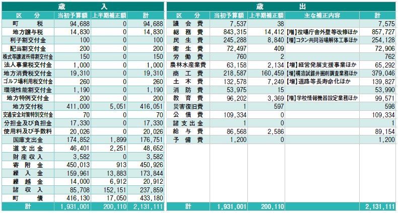 令和6年度の決算額が確定しました。町の歳出額は前年度に比べ、一般会計で2.9%減(5億5,402万円減)の182億9,339万円、特別会計で3.09%増(6,713万円増)の22億3,615万円となりました。広報7月号には令和6年度の最終予算額などを掲載しましたが、今回は令和6年度決算額の状況などについてお知らせします。