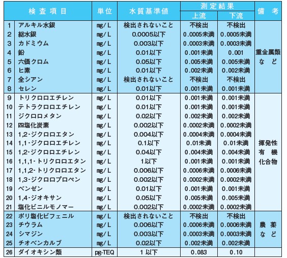 地下水の上流・下流の両方を検査しましたが、いずれも法定基準値以内であり、異常はありませんでした。