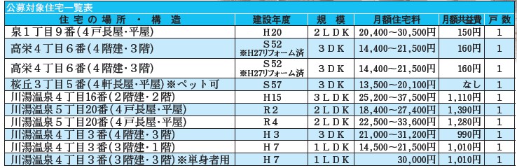 役場では、次の期間で町営住宅入居者を募集します。入居者は、条件を備えている方から、困窮度などに応じて決定します。