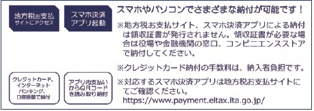 くらし 9月の町税などの納期限 38/40 前の記事 次の記事 発行日 : 2025年09月01日 自治体名 : 北海道弟子屈町 広報紙名 : 広報てしかが 2025年9月号 今月の町税などの納期限は次のとおりです。 納め忘れのないようにしましょう。 固定資産税 3期:9月30日(火) 国民健康保険税 4期:9月30日(火) 後期高齢者医療保険料 4期:9月30日(火) ■QRコードを読み取っておうちでいつでもかんたん納税 問合せ:役場税務課 【電話】482-2914(課直通)まで。 Tweet シェアする 9月の予定 今月の表紙