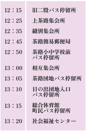 ※帰りはコンサートが終わり次第、逆の順路で運行します。