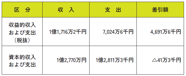 「収益的収入および支出」では、1390万2千円の利益を計上し、全額を減債積立金に積み立てました。