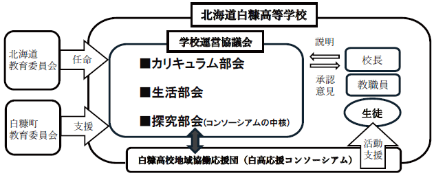 白糠高校は「地域とともに歩む学校づくり」を行うため、学校運営協議会を設けた、コミュニティースクール(以下、コミスク)となっています。