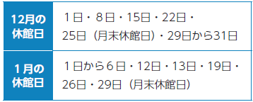 冬季(12月から3月)の期間、開館時間は下記のとおりです。