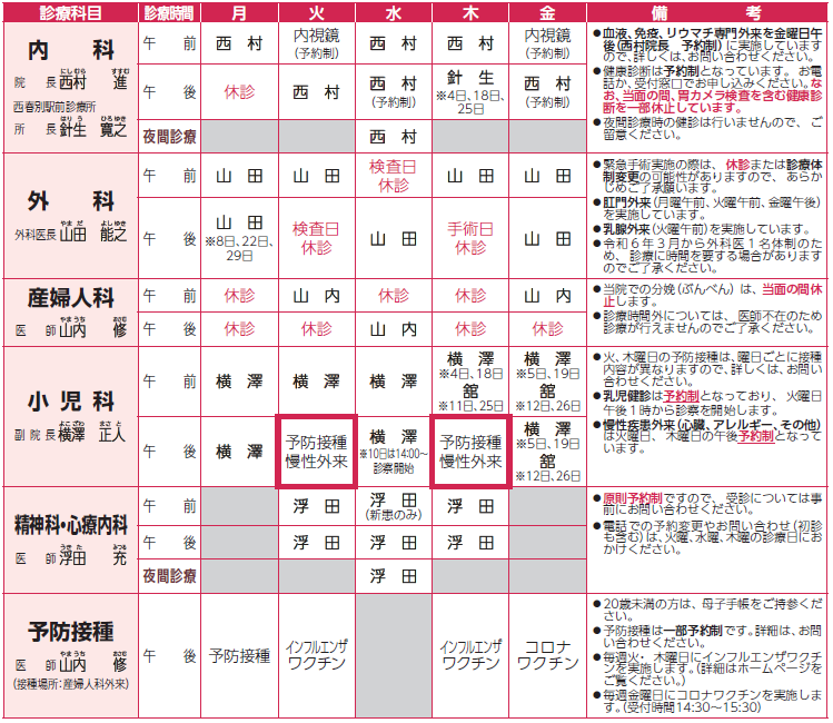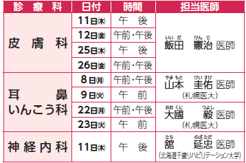 ※出張医による診療科は、天候、交通機関などの都合により休診や時間変更となる場合がありますので、あらかじめご了承ください。