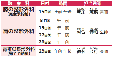 ◇整形外科(膝・脊椎)の診察は完全予約制となります。