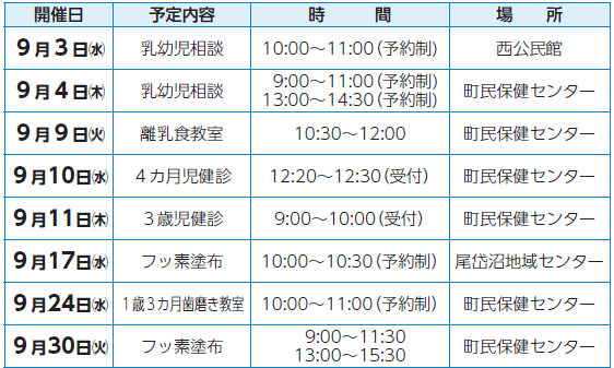 9月の4カ月児健診対象者:対象者には個別に通知します