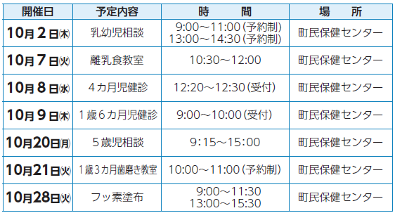 10月の4カ月児健診対象者:対象者には個別に通知します