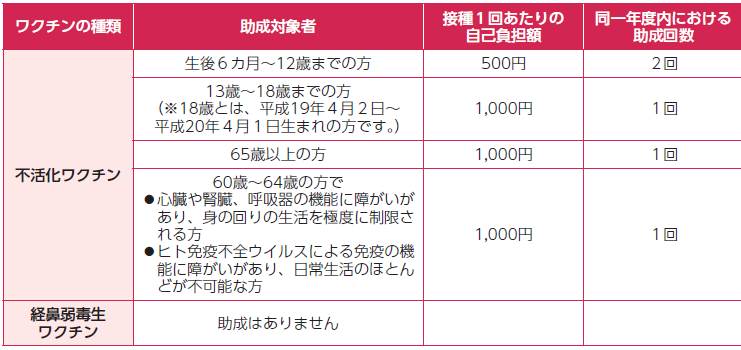 ※助成対象者で生活保護を受けている方は、接種料金の全額を助成します。