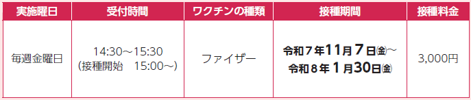 11月7日(金)から、町立別海病院で新型コロナワクチン接種が始まります。(予約の必要はありません。)