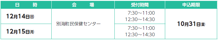 申込み・問合せ:別海町民保健センター
