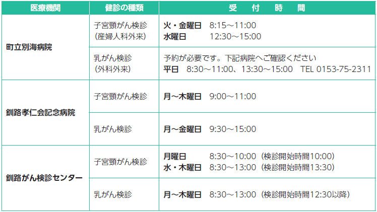 ・子宮がん検診は午前8時30分から、乳がん検診は午前8時からの実施となります。