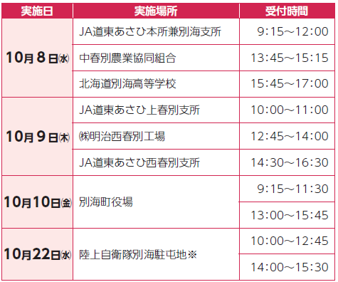 ※陸上自衛隊別海駐屯地での献血は、自衛隊員を対象としております。