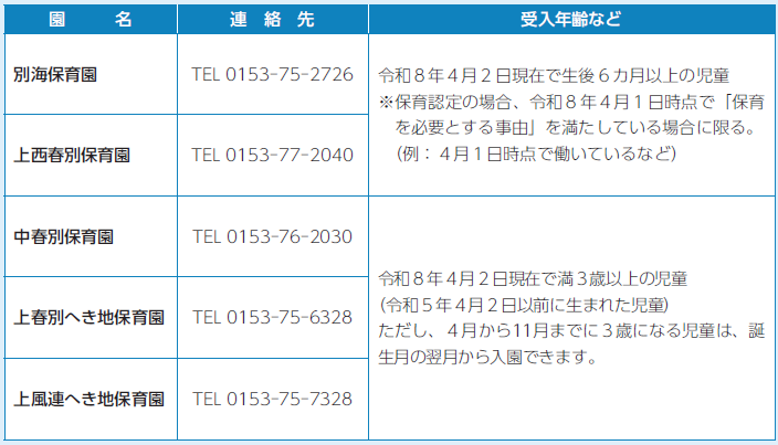 令和8年4月からの入園申込受付期間は、令和7年12月1日(月)から令和7年12月12日(金)を予定しています。詳細については、改めて広報別海12月号でお知らせします。