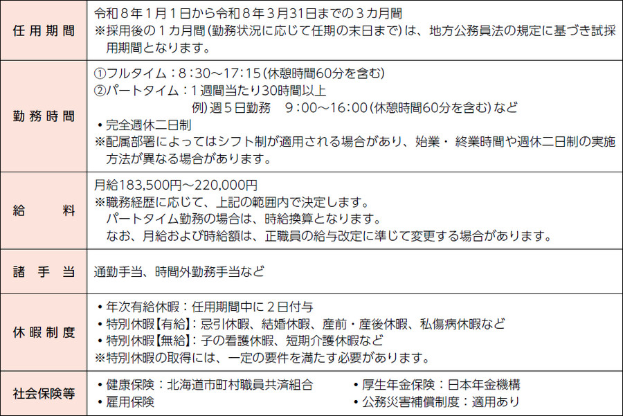 地方公務員法第22条の2の規定に基づき、一会計年度(4月1日~翌年3月31日)の期間内で任用される、一般職の非常勤職員をいいます。
