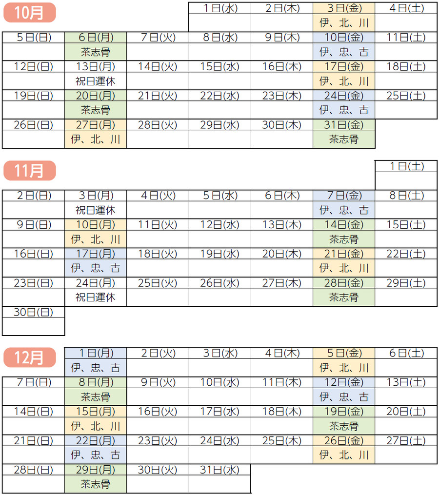 ※予約状況により時間が前後します。