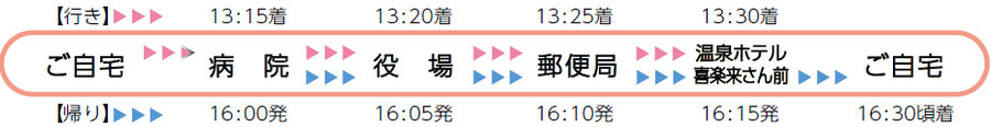 ・通院、買い物、外食、温泉利用、役場での手続きなどにご利用いただけます。