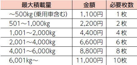 ・貨物車は最大積載量により必要枚数が変わりますので必ず、ご確認ください。
