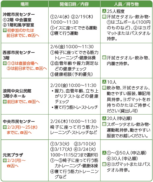 内容:骨・関節・筋肉などを鍛えてロコモを予防する運動など