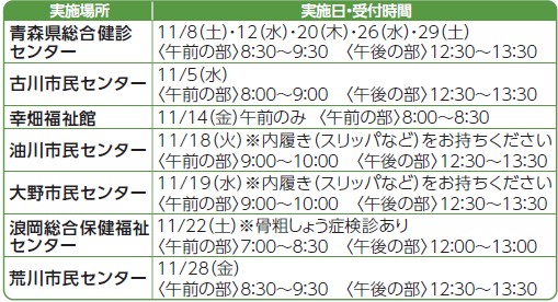 ※2…青森県総合健診センターは、女性のみ午後も受付