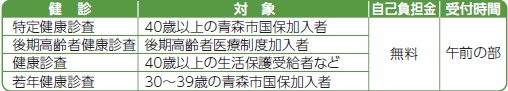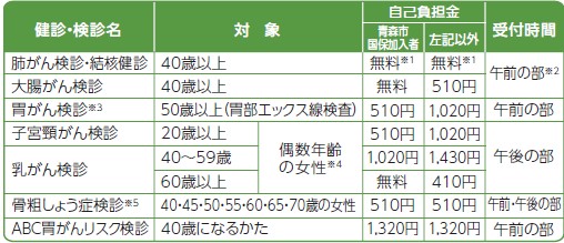 ★上記(※3含む)以外の検診・対象外のかたの検診については任意での検診となるため、費用は全額自己負担となります。申込みや料金などについては、医療機関または青森県総合健診センター(【電話】017‒741‒2336)へお問合せください。