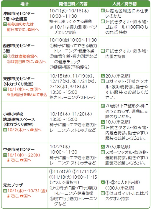 内容:骨・関節・筋肉などを鍛えてロコモを予防する運動など